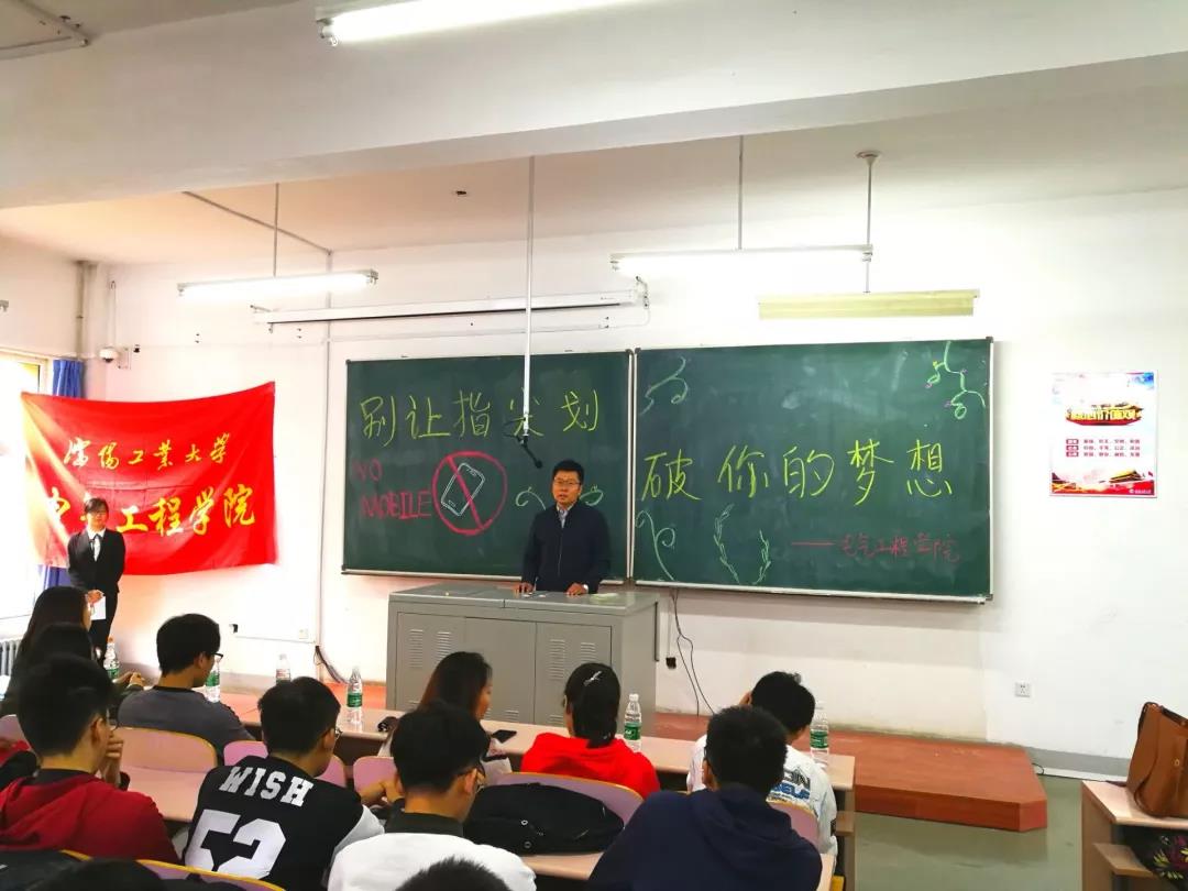 为了大力倡导优良学风,着力整顿课堂秩序,严格教学纪律,给同学们营造良好的学习氛围。2018年10月22日,太阳成集团tyc33455于教学楼B110举行了“别让指尖划破你的梦想”手机袋授予仪式。太阳成集团tyc33455党委副书记兼副院长、纪委书记孟奇恺老师,太阳成集团tyc33455团委书记彭波老师以及各年级辅导员老师参加此次活动。