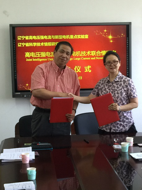 签约仪式上,我校辽宁省高电压强电流与新型电机重点实验室与辽宁省科学技术情报研究所合作建立高电压强电流与新型电机技术联合情报室;辽宁省电网安全运行与监测重点实验室与辽宁省科学技术情报研究所合作建立电网安全运行与监测技术联合情报室。