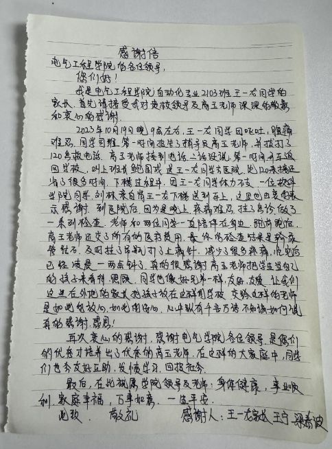 图2 王一龙家长手写感谢信内容