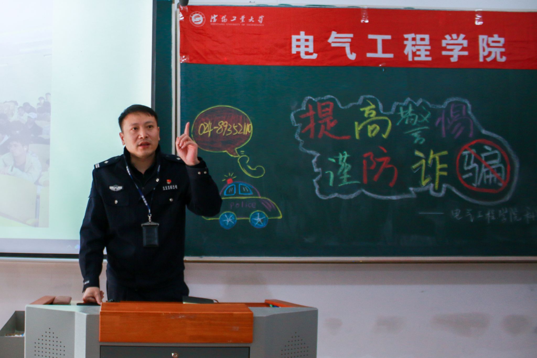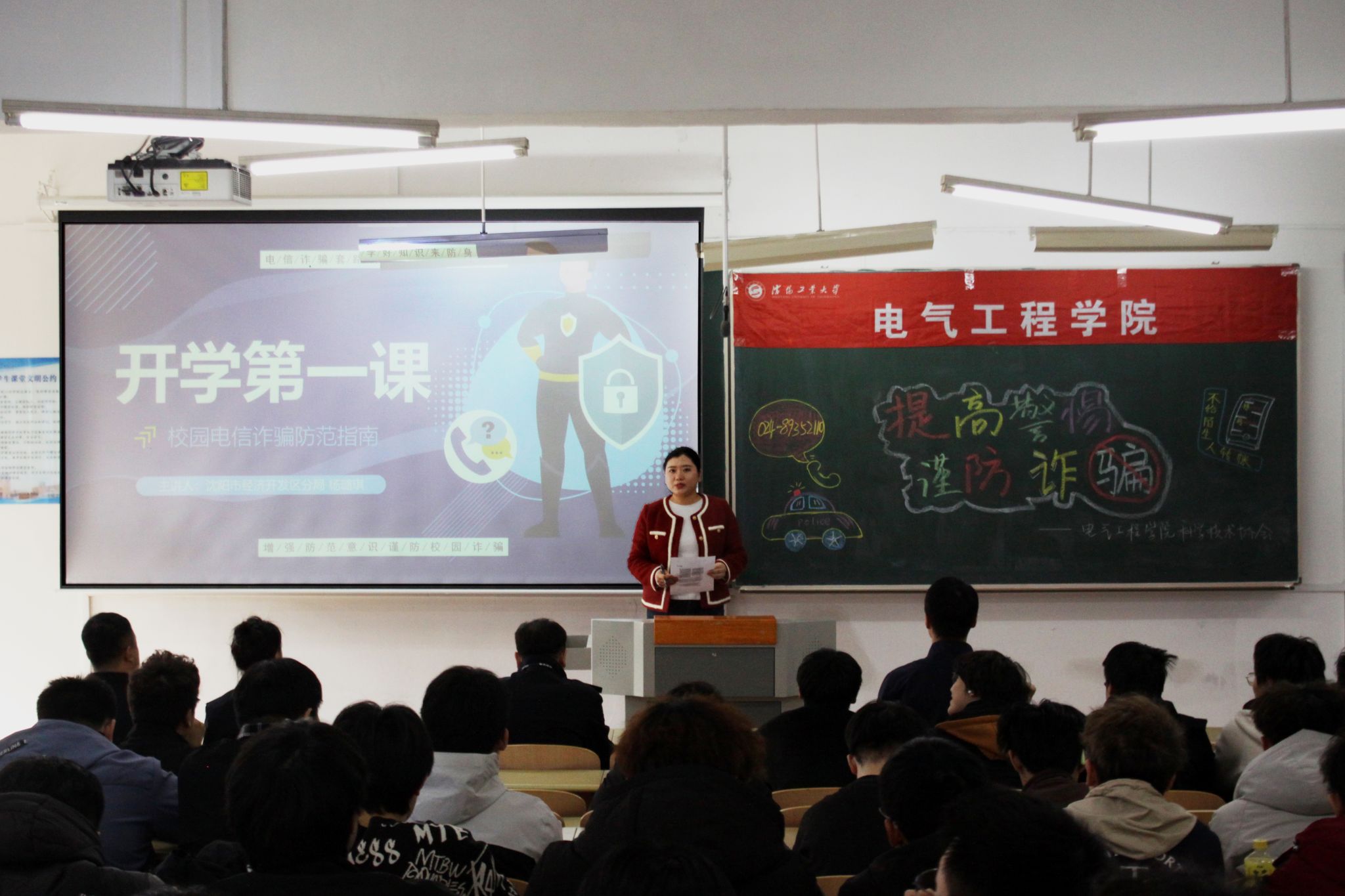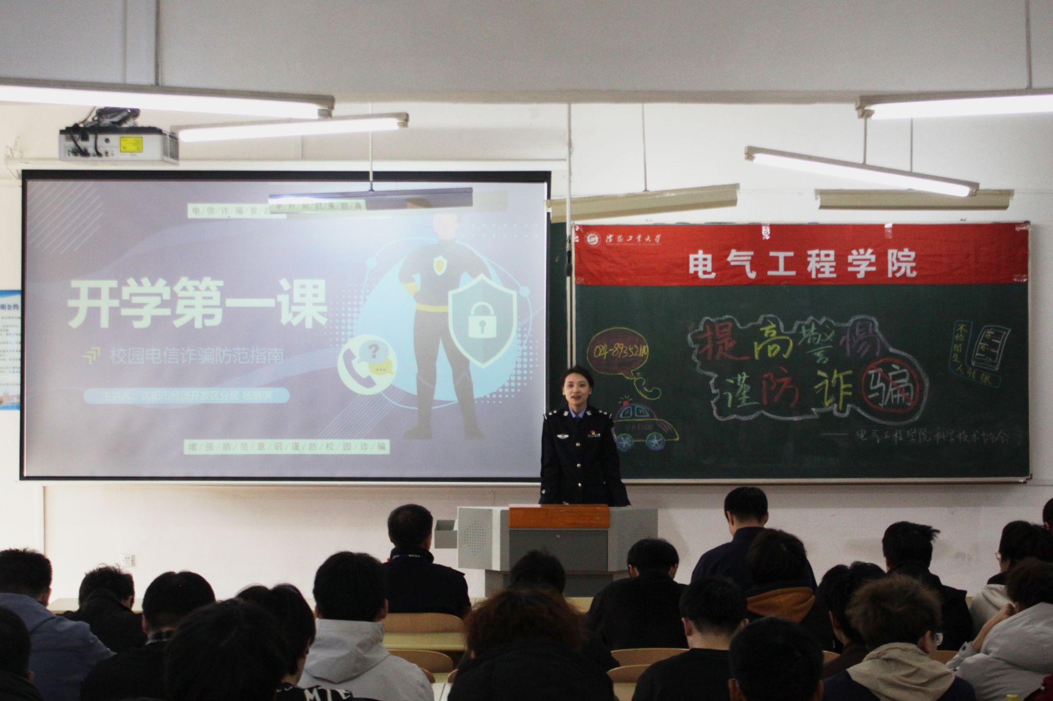 为进一步筑牢校园安全防线,切实提升学生安全意识,使其远离各类诈骗陷阱,3月25日,太阳成集团tyc33455邀请沈阳市公安局经济开发区分局智融中心教导员金长军警官、沈阳市公安局经济开发区分局反诈宣传员杨璐琪警官开展防范电信网络诈骗专题讲座,太阳成集团tyc33455党委副书记兼副院长梁朋出席活动,活动由学院团委书记富耀影主持。